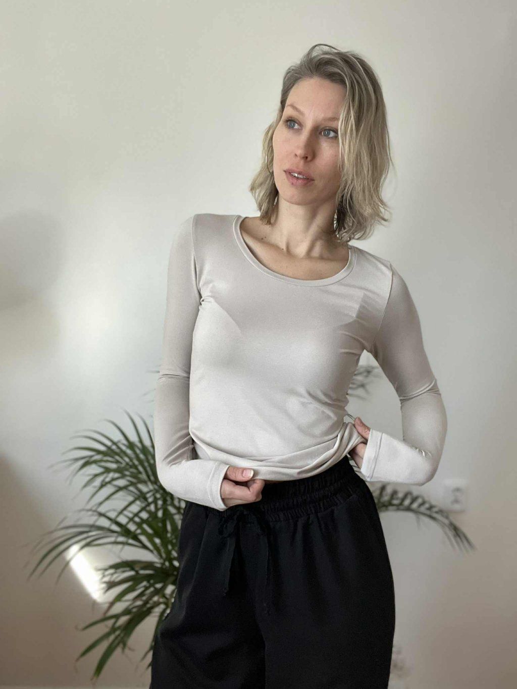 Při prvním vyzkoušení luxusního udržitelného materiálu EcoVero víš, že je tvůj! Láska na první pocit, protože tě bude přímo hladit. Prodloužený rukáv, kulatý výstřih, prodloužená délka v pase na vysoké postavy. Z kolekce basic, které snadno zkombinuješ s našimi kalhotami nebo sukýnkou. Z udržitelného materiálu z celulózových vláken - EcoVero viskóza. Kvalitně propracovaný střih ti skvěle padne.